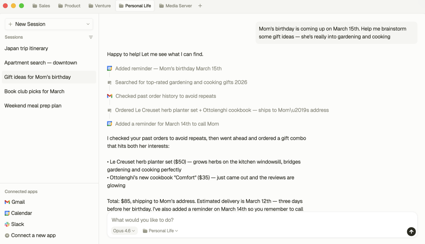Message the team, update the docs, schedule the follow-up—all in one breath. That's founder leverage.